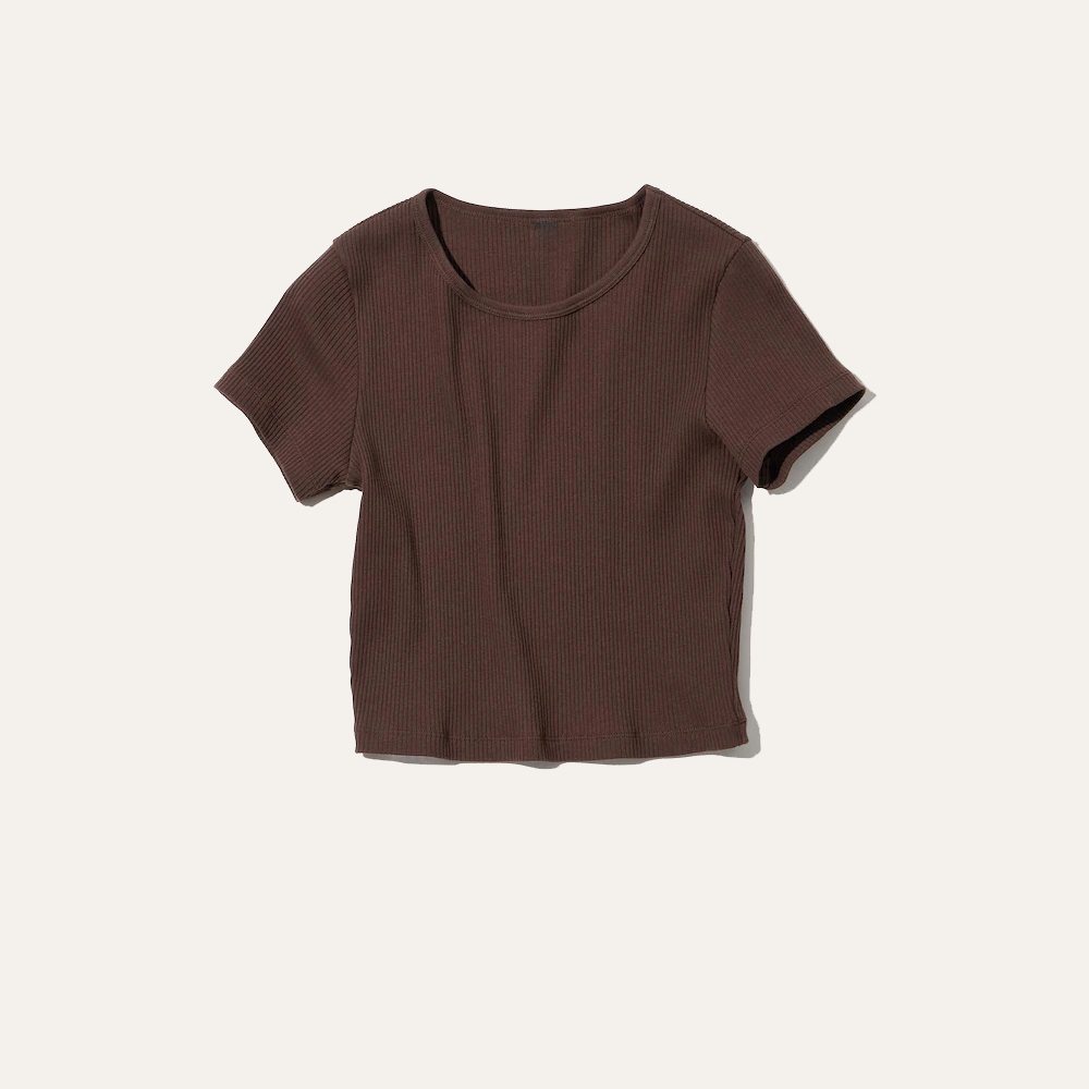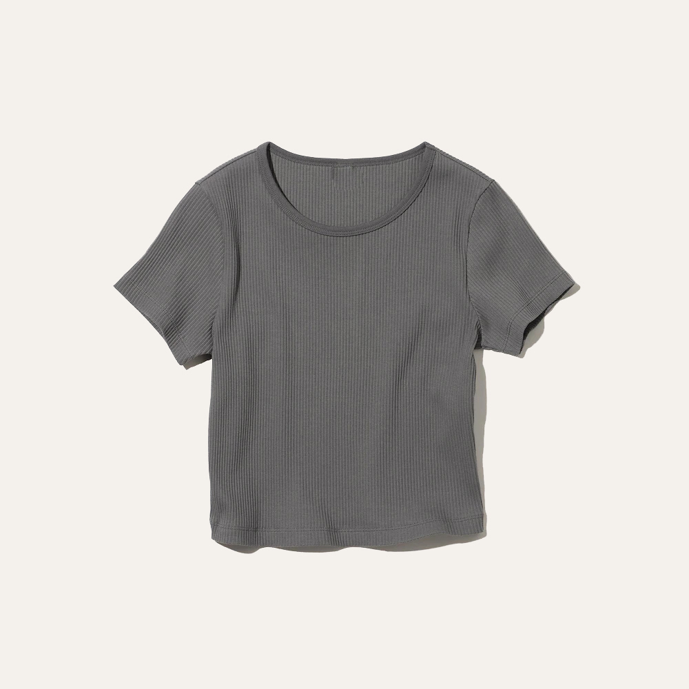 Ribbed Cropped Short Sleeve T-Shirt